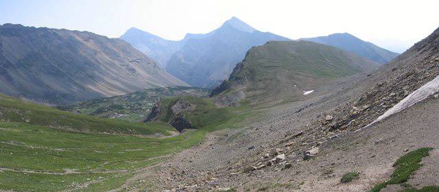 Grassy outlier to east of North Buller Pass. Mount Kidd in distance.