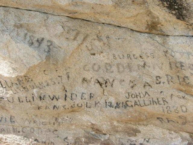 Camp Rock--California Trail emigrants wrote names in axle grease