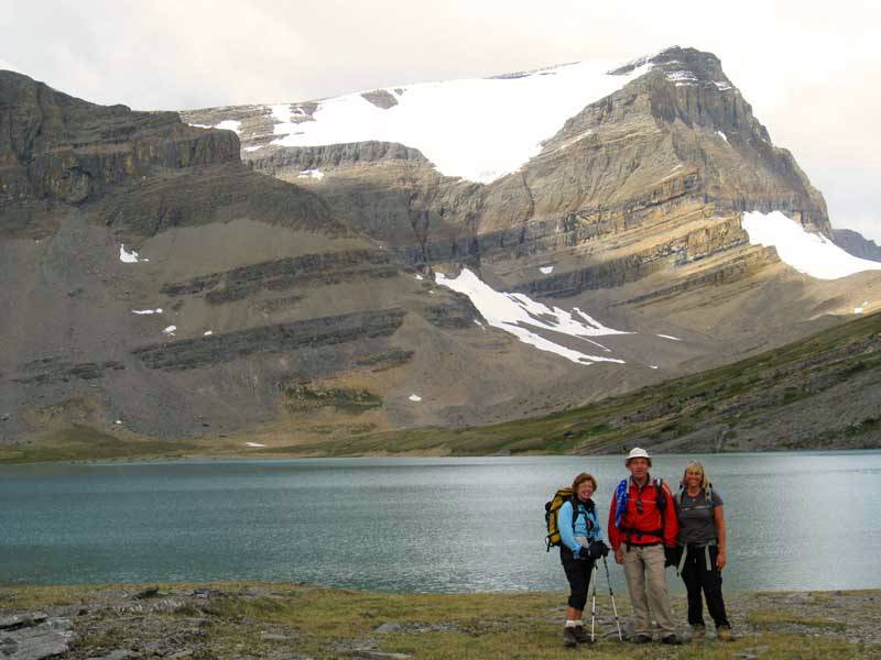 Jeannette, Carl and Kim at Caldron Lake (Mistaya Mtn in background)