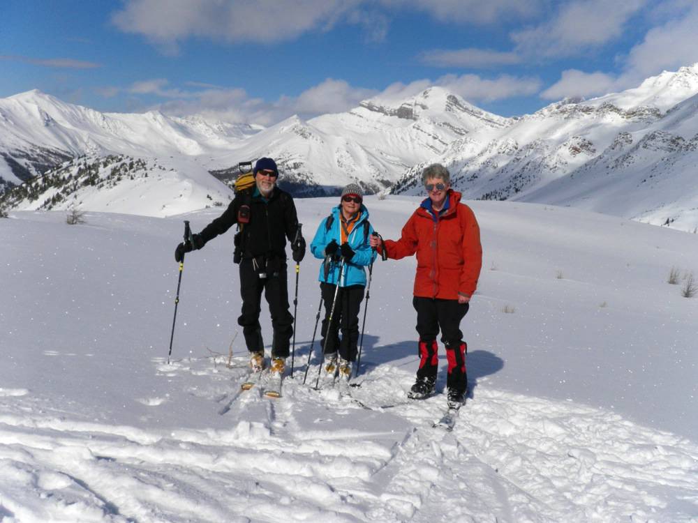 Arnold, Nancy and Doug on Purple Bowl Ridge. Lower part of ridge is above Arnold's right pole.