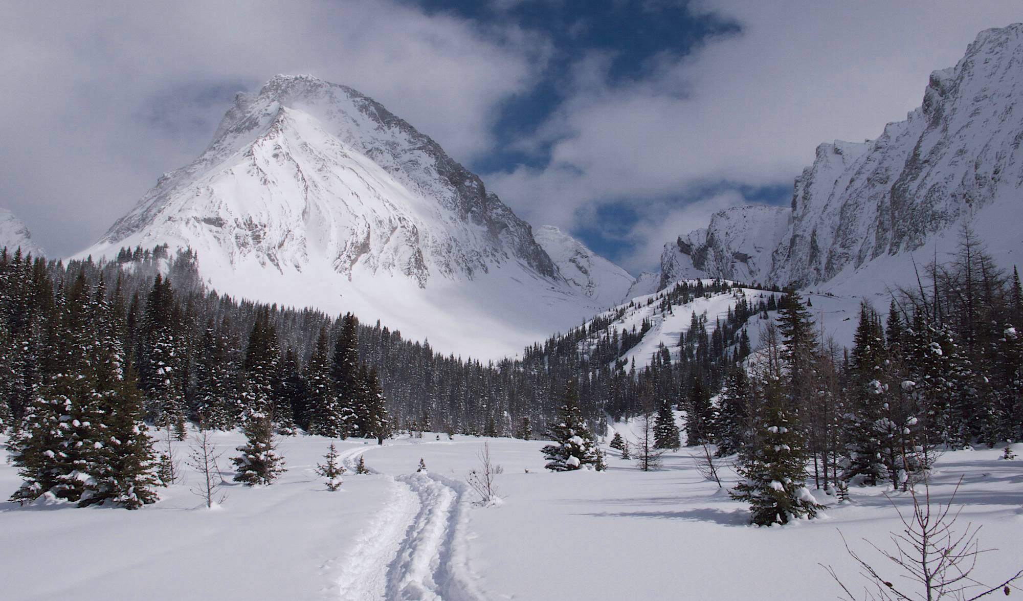 Approaching Chester Lake ~2,212m elevation. Gusty Peak (3,000m) at centre, Mount Chester (3,054m) at right.