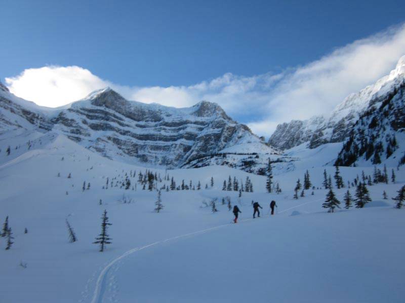 Summit is left of photo. Large white cloud is filling in the col between White Pyramid and Chephren ( Chephren is out of sight to the left of photo)