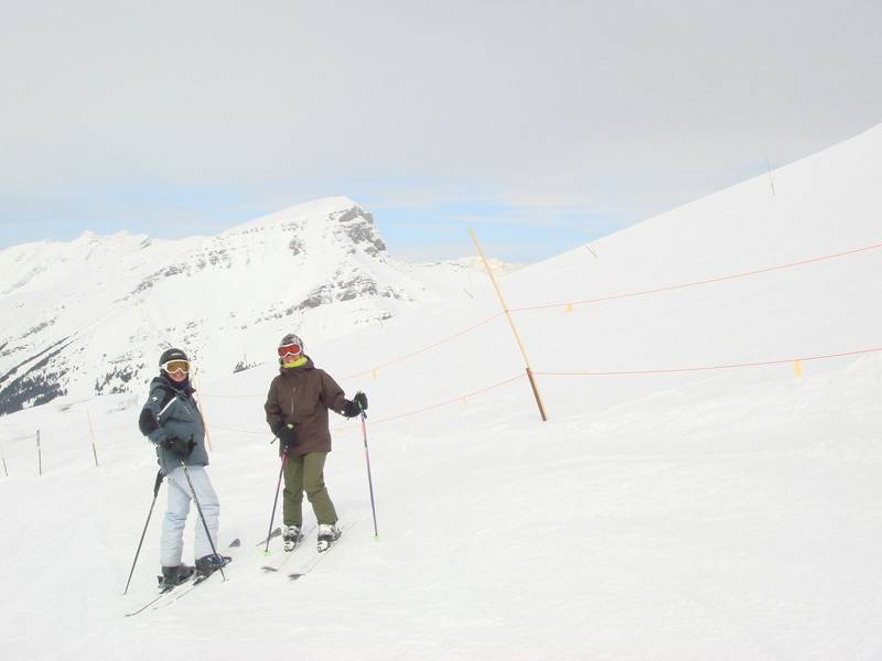 Carl and Yoko at Sunshine village, Mt. Bourgeau background
