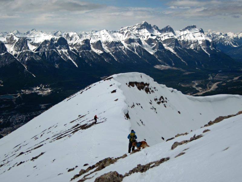Descending Grotto - Mount Rundle in background (Sim, Celine and Tashi.