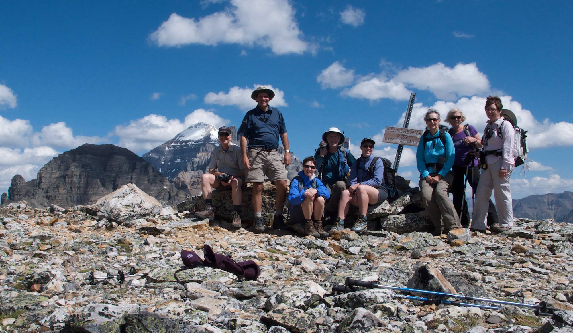 At Wenkchemna Pass (2,611m): Norman, Cornelis, Lynda, Tom, Lisa, Denise, Wanda and Barb.