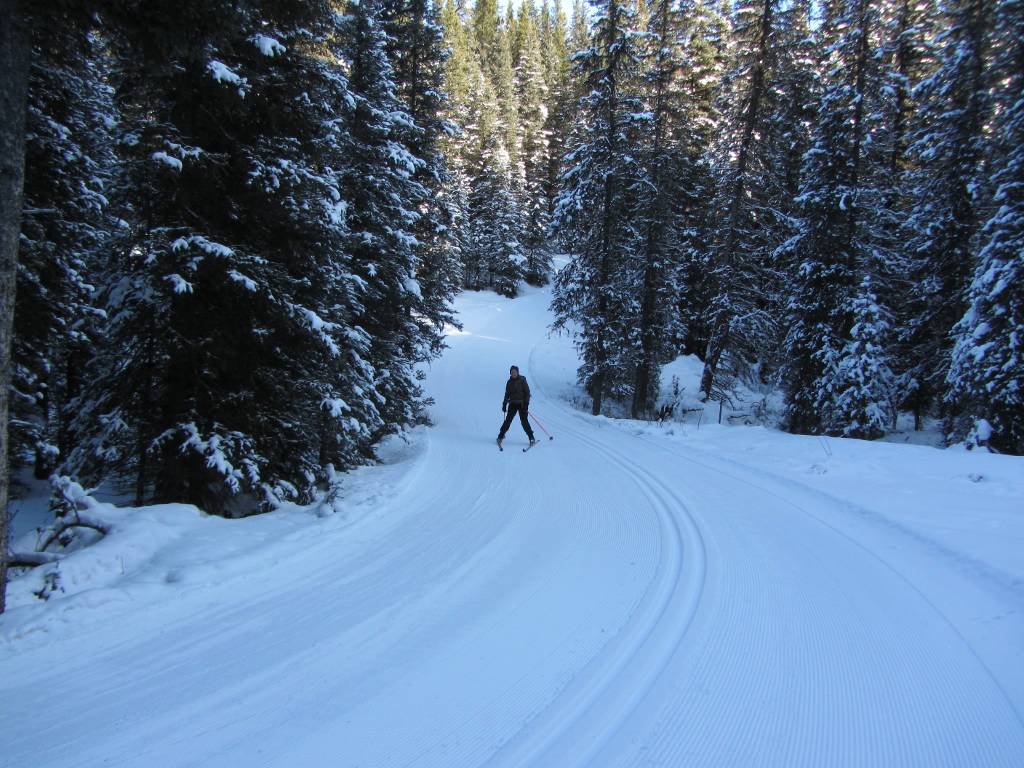 Pat successfully gets to the bottom of the steep Whiskeyjack hill.