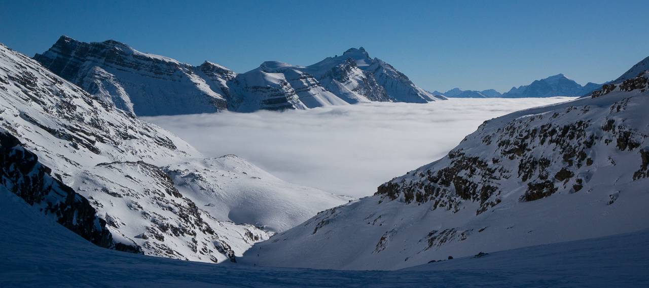 Valley fog on the south side of the second pass Dolomite circuit.