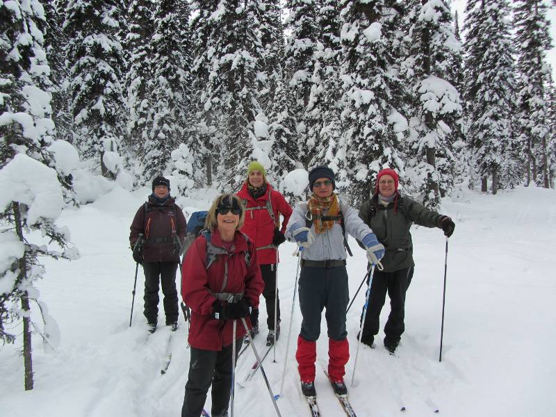 Nancy, Barbara, Madeleine, John & Warren on Telemark trail