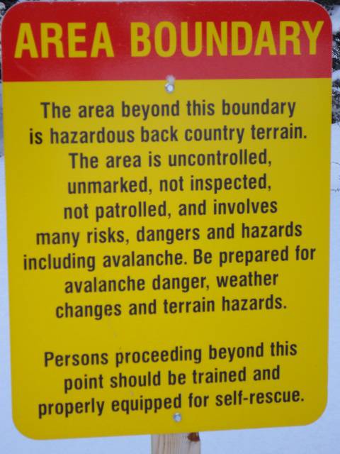 General warning sign just up from Larch ski run at Lake Louise ski hill.