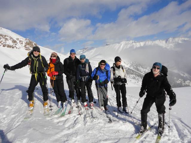 L-R: Arnold, Margaret, Terry, Sim, Clifton, Inge, Greg near Unity Peak,