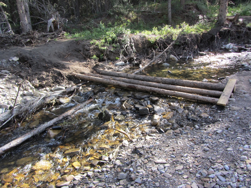 Makeshift bridge over Pigeon Creek