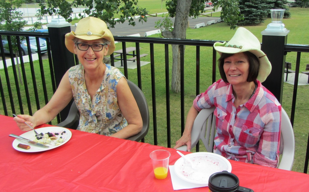 Pancake breakfast helpers Denise & Anne get a chance to chow down