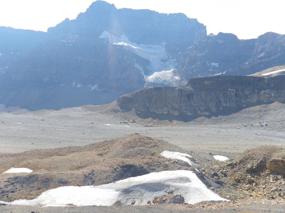 Looking west from the ridge over the smooth runout from the Watermelon Glacier and the glacier on Watermelon SW