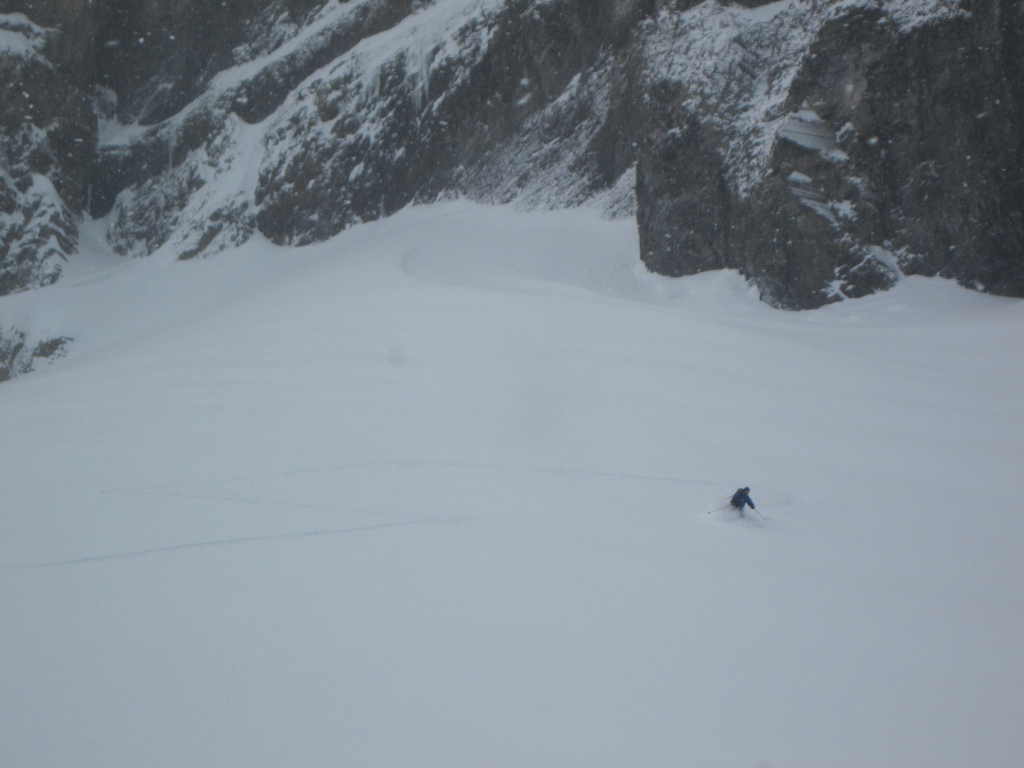 A poor photo but gives an idea of the ski quality we found on some sheltered lines.