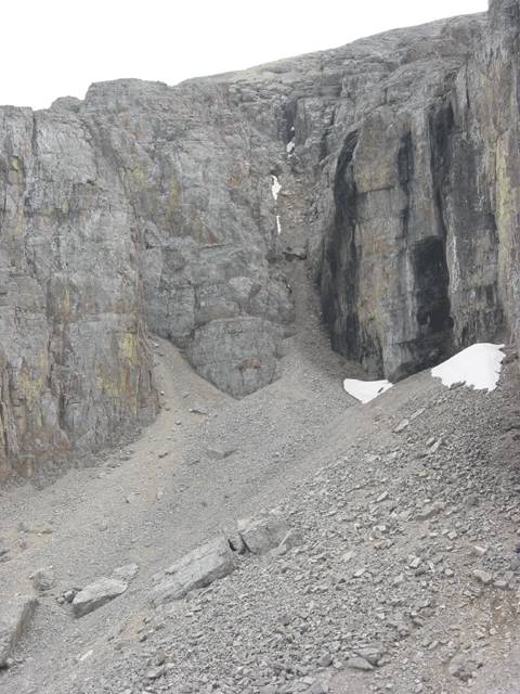 The crack to the right of centre represents the crux of the trip. The route is straight up then to the left.