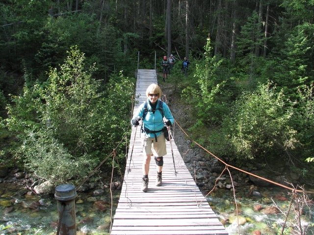 Ginger bounces over Ole Creek suspension bridge