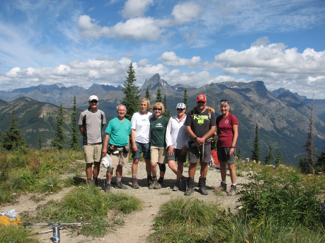 Pat, Carl, Madeleine, Ginger, Carole, Bill, Susan--Mt. St. Nicholas on horizon