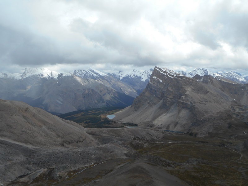 Looking at North Molar pass meadows and Fish Lake from Molar pass ridge