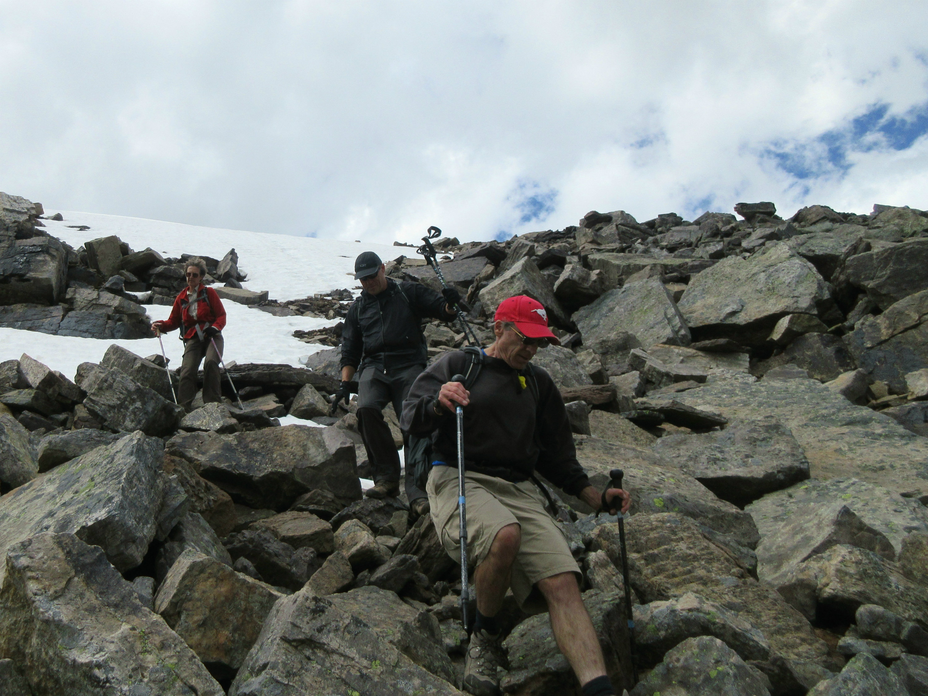 Gary, Simon and Yolande on the blocky upper slopes of Wastach Mountain