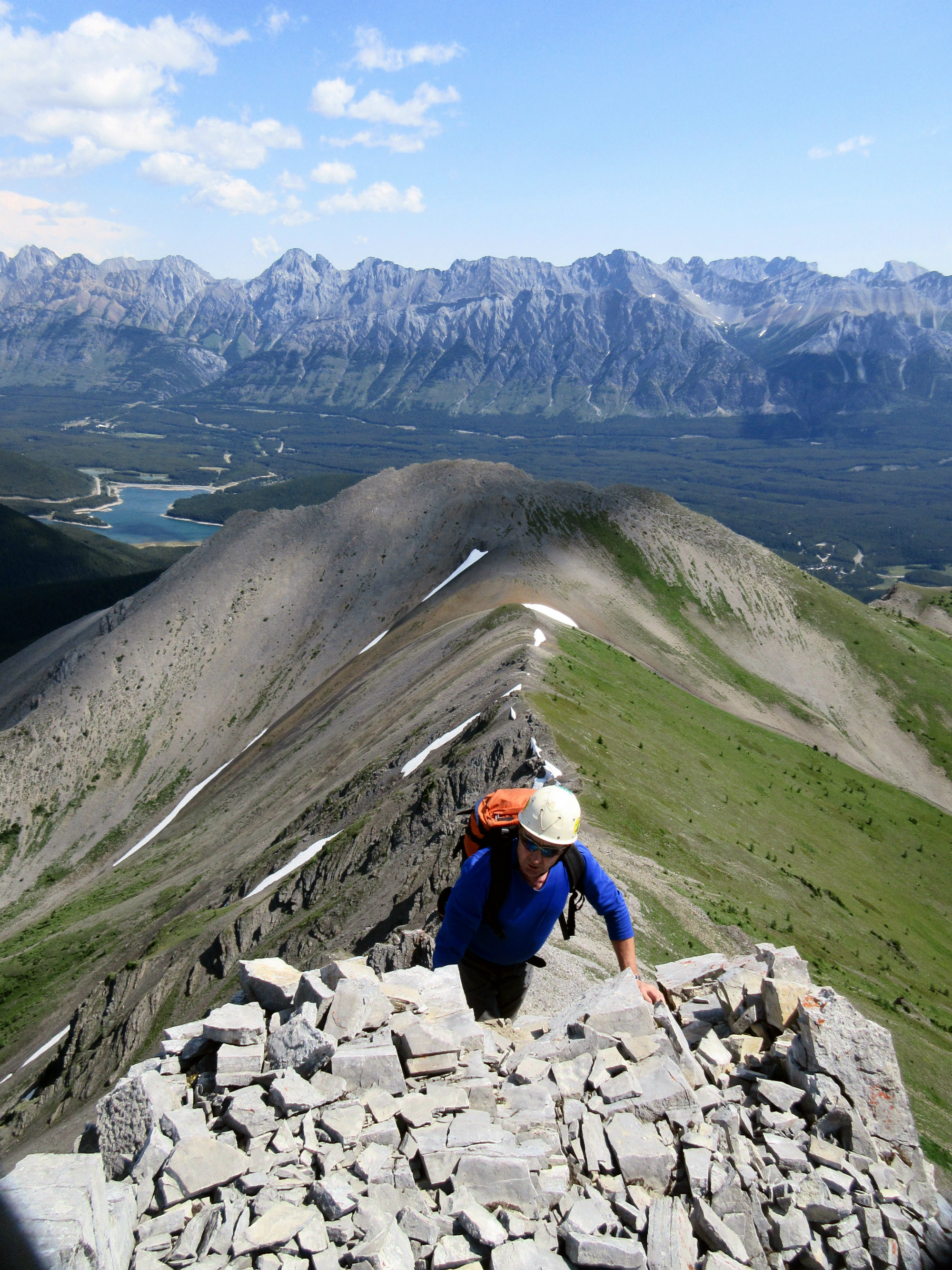 Ross scrambling on the East ridge of the North Peak Mount Indefatigable