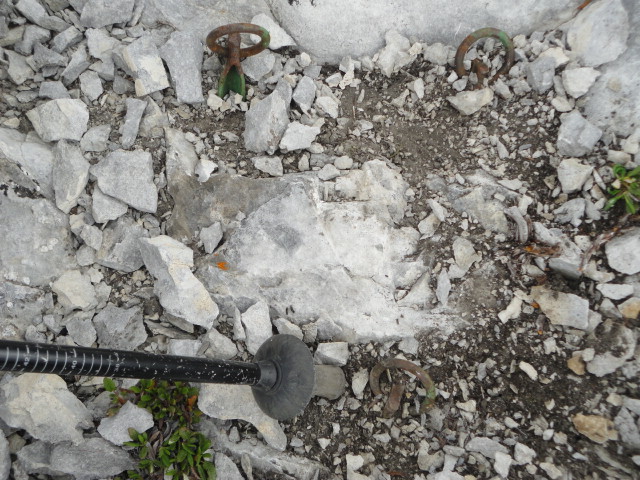 Mt. Princess Margaret: Three Pitons (placed 2010) above optional crux downclimb