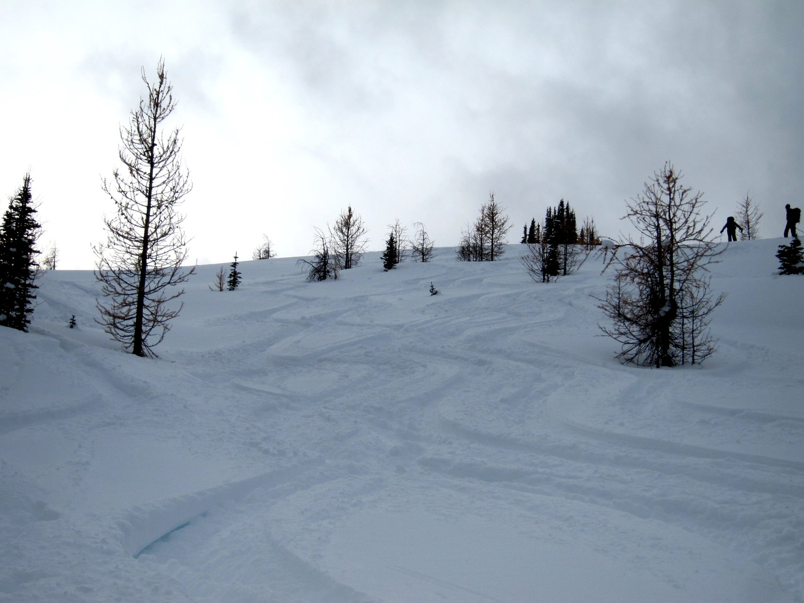 First tracks in new snow - note depth when the skis penetrated into the unsupportive facets