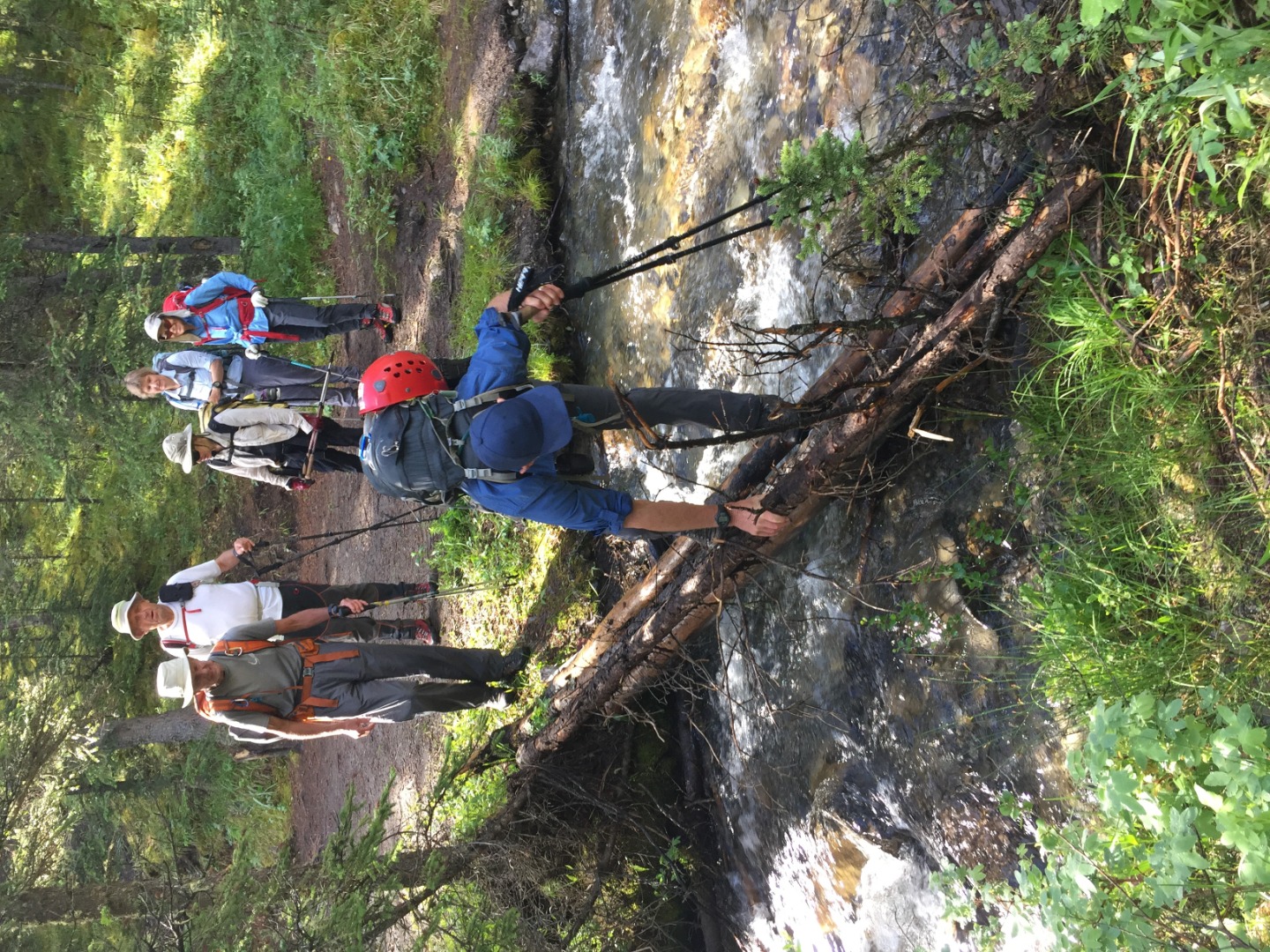 Bruce crossing creek on log bridge