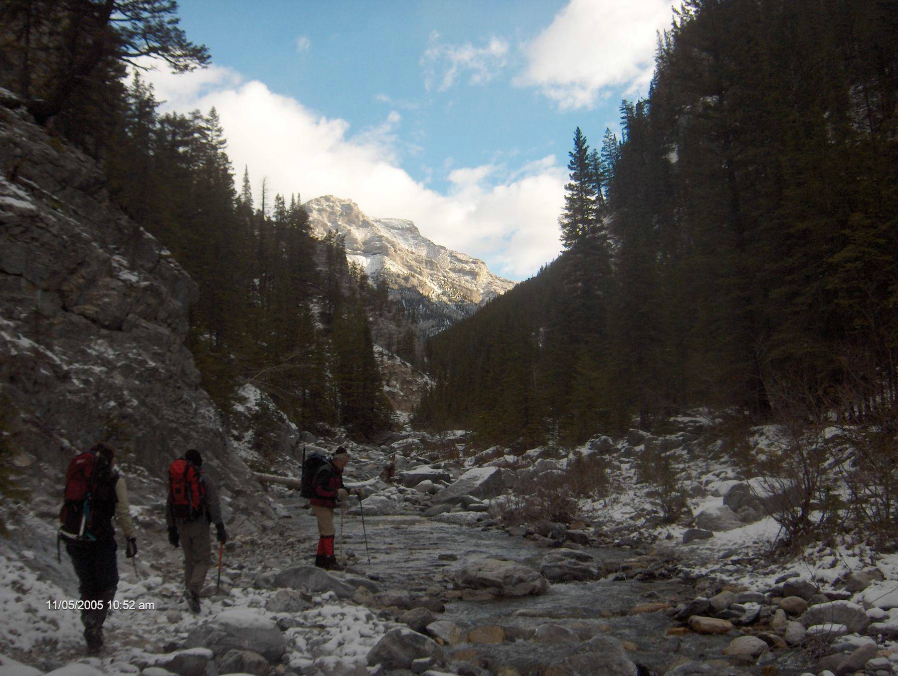 Nov day made the creek rather slippery. Goal of the day is the mountain in the background GR218648