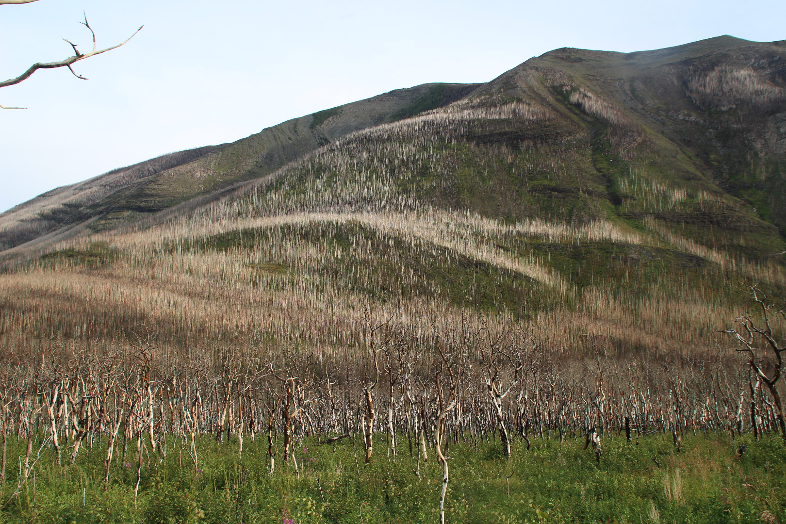 Burnt forest along Red Rock Canyon Parkway in Waterton