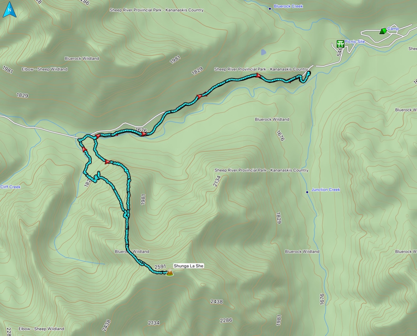 Route via bridge, up NW ridge, down NW gully