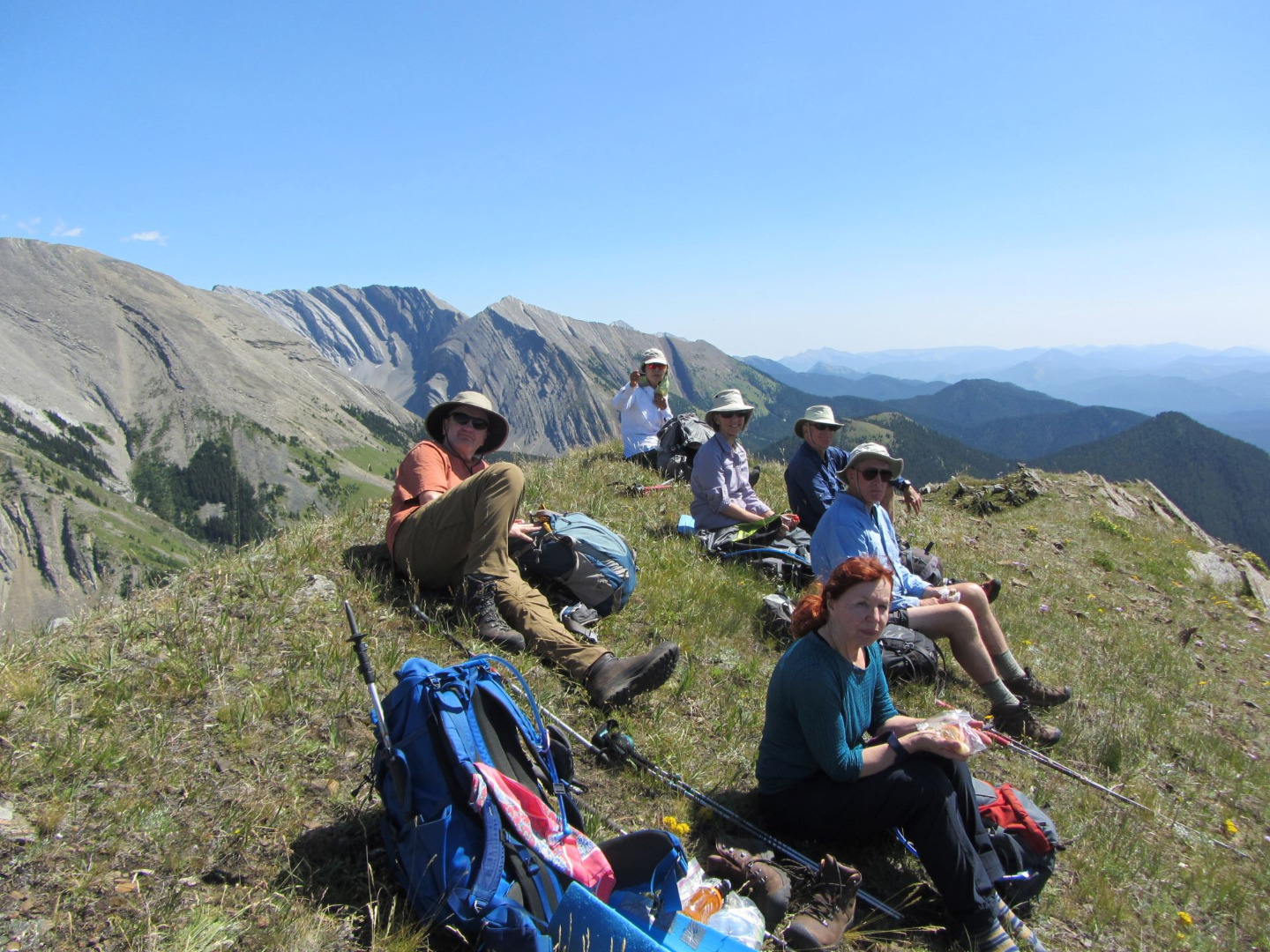 2nd lunch at the high point: Jim, Sim, Rosanne, Philip, John plus Janet in front