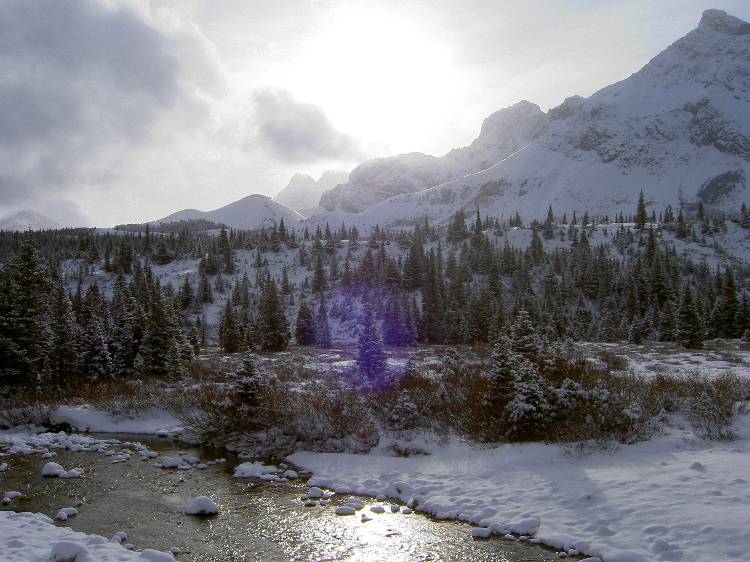 Tombstone Campground Bridge, Elbow River looking South along Mt Ray Ridge