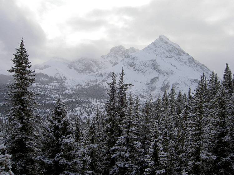 View on Tombstone Mountain (3035m) while climbing up to Tombstone Lakes