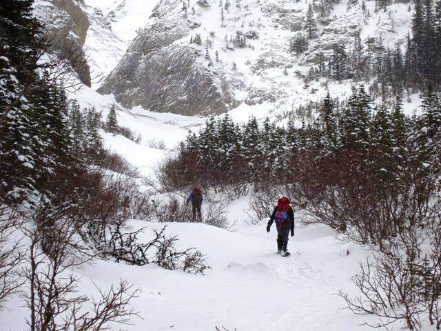 Jeannine and Jerome approaching an avalanche runout in the French Creek area.