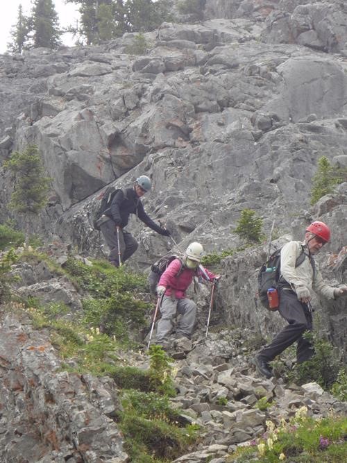 Ramblers by-pass cliffs on descent of the "Horseshoe"