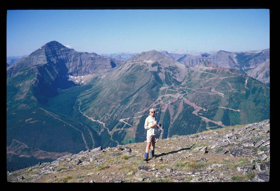 Christine stands on the ridge South of Westcastle Ski area during a one week backpack on the Canadian Divide Trail in August 2005