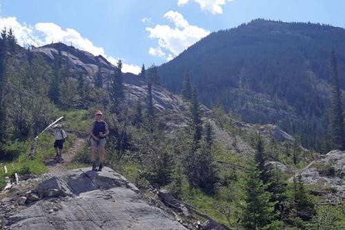 Descent off Razor's Edge, our summit at the right