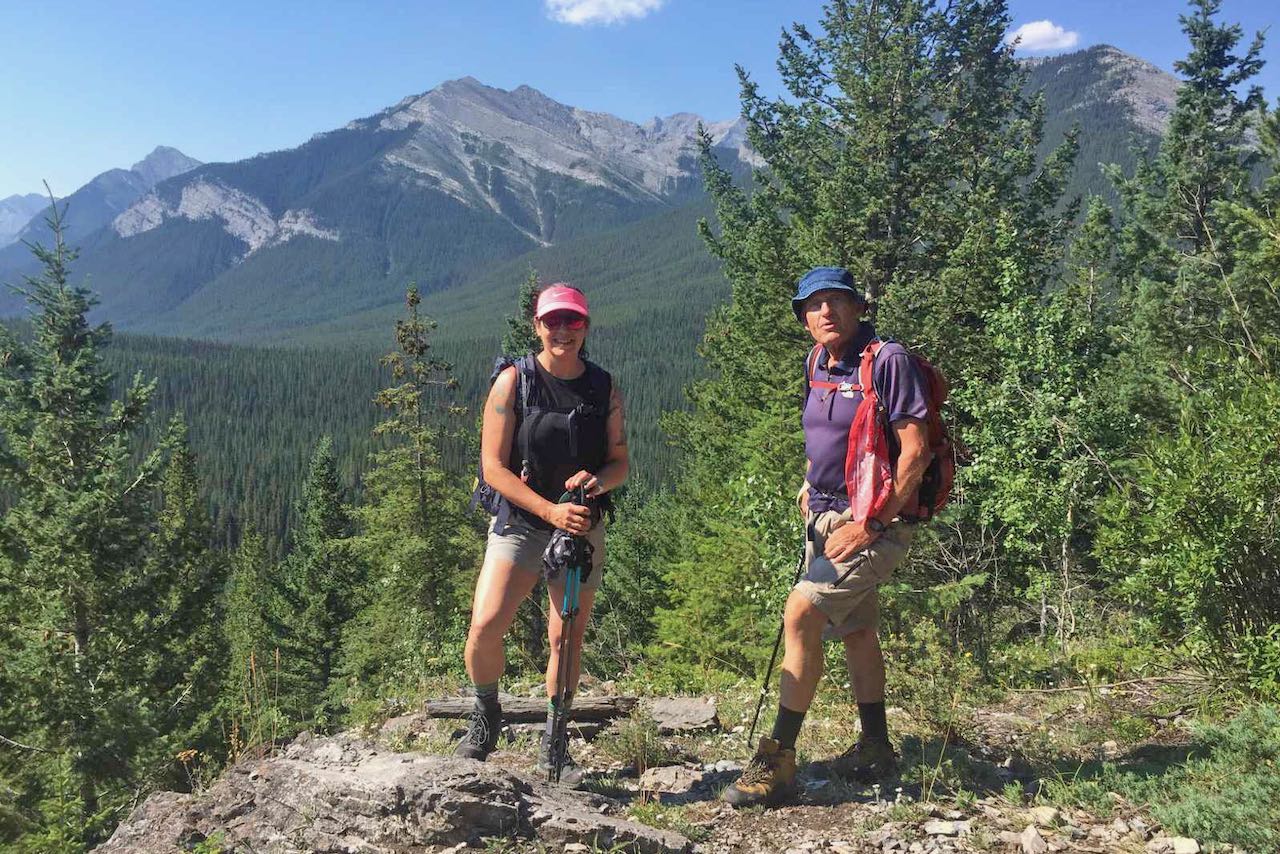 At the south "summit" of Engagement Mtn (Mary Barclay, "Twin Towers", Grant McEwan in bkg) - photo from Brian