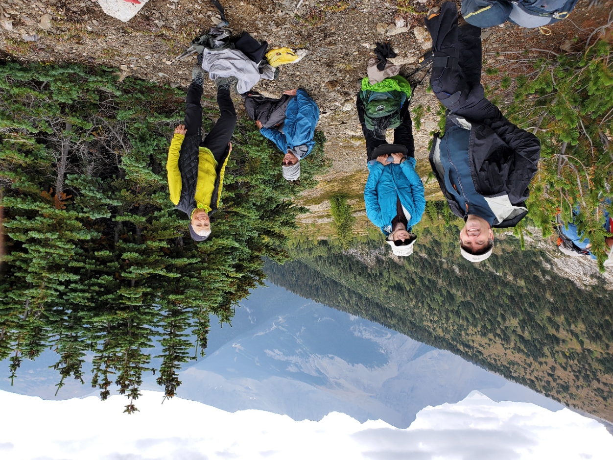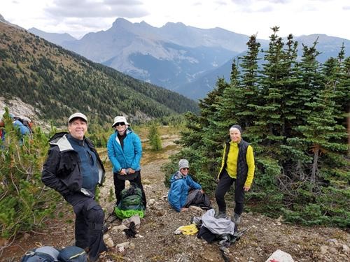 Brian, Jane, Evan and Alda finding a bit of shelter for lunch.