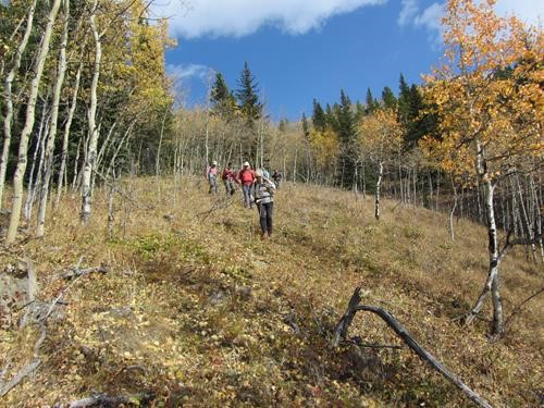 Off trail descent through aspens