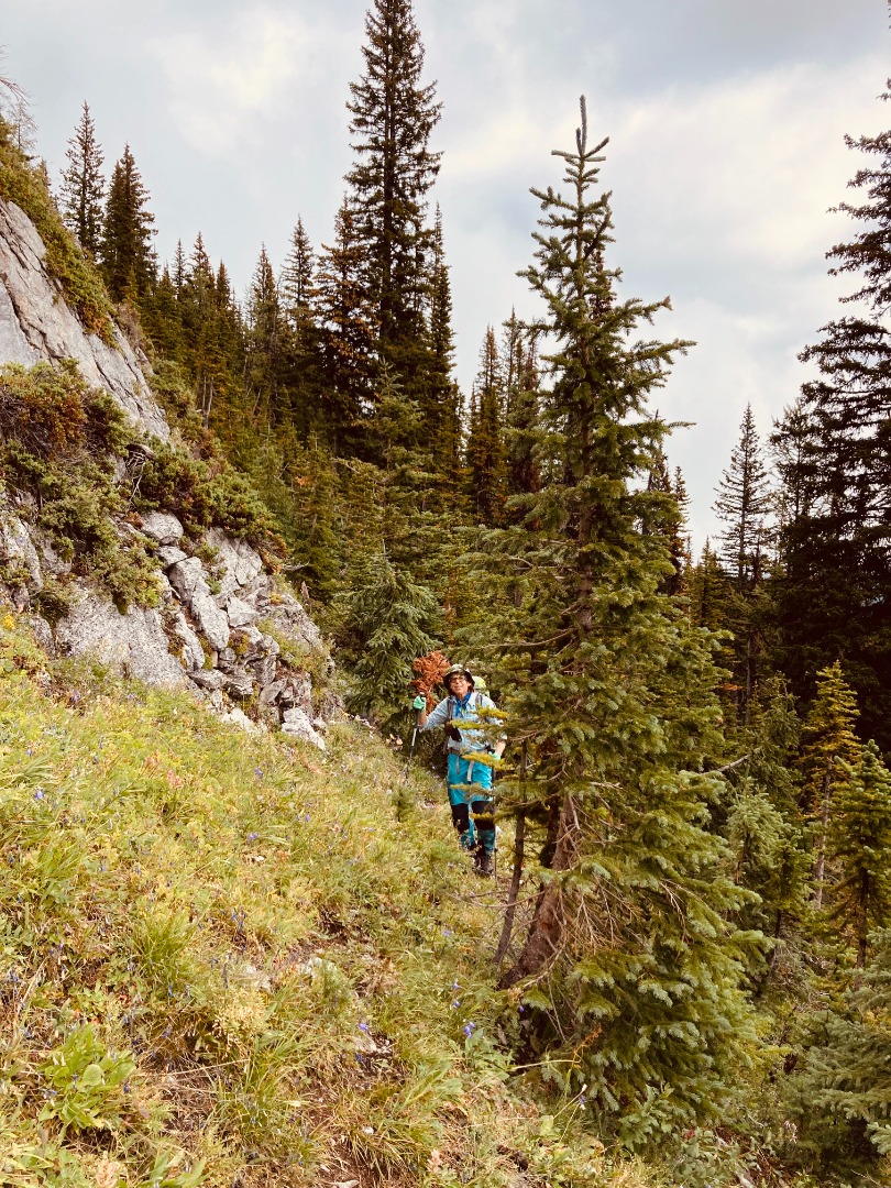 Ulli as we came out from below the first set of cliff bands, happy the bushwacking was over!