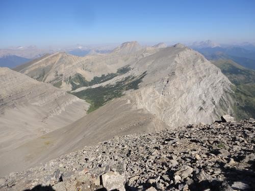 View NW from approach ridge to Mt Maclaren. Click to enlarge and see faint trail on ridge line