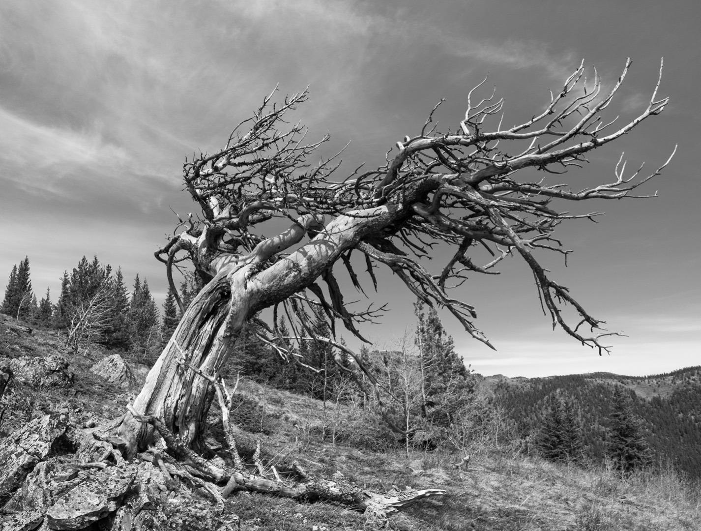 One of the many picturesque gnarled pines along the exposed ridges