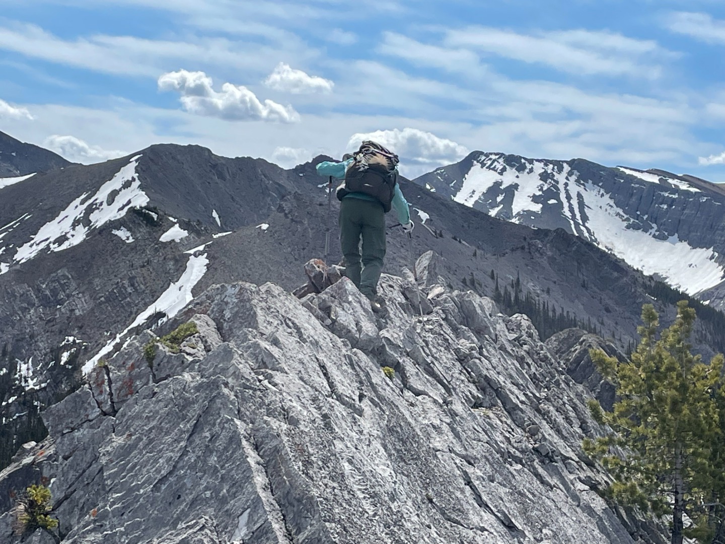Sim navigating the ridge beyond our summit
