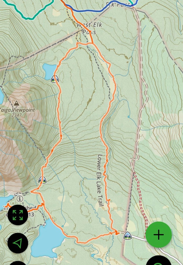 Our Route from West Elk Pass out on Upper trail back on Lower