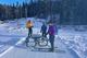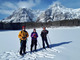 Jane, Carl, Jim on the Bill Milne trail bridge over Evan-Thomas Creek, "The Fortress" peak behind