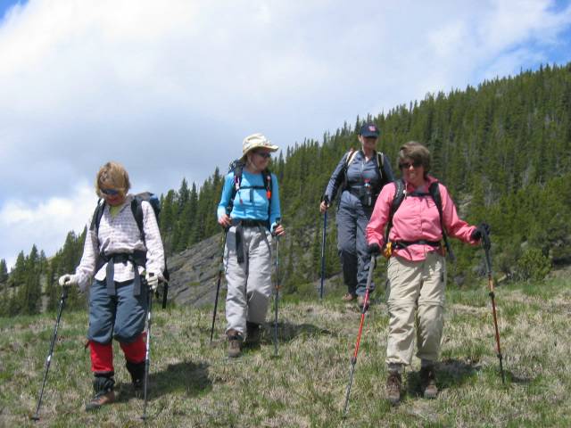 The grassy descent: Barb, Marietta, Janice & Aldis