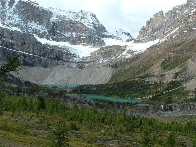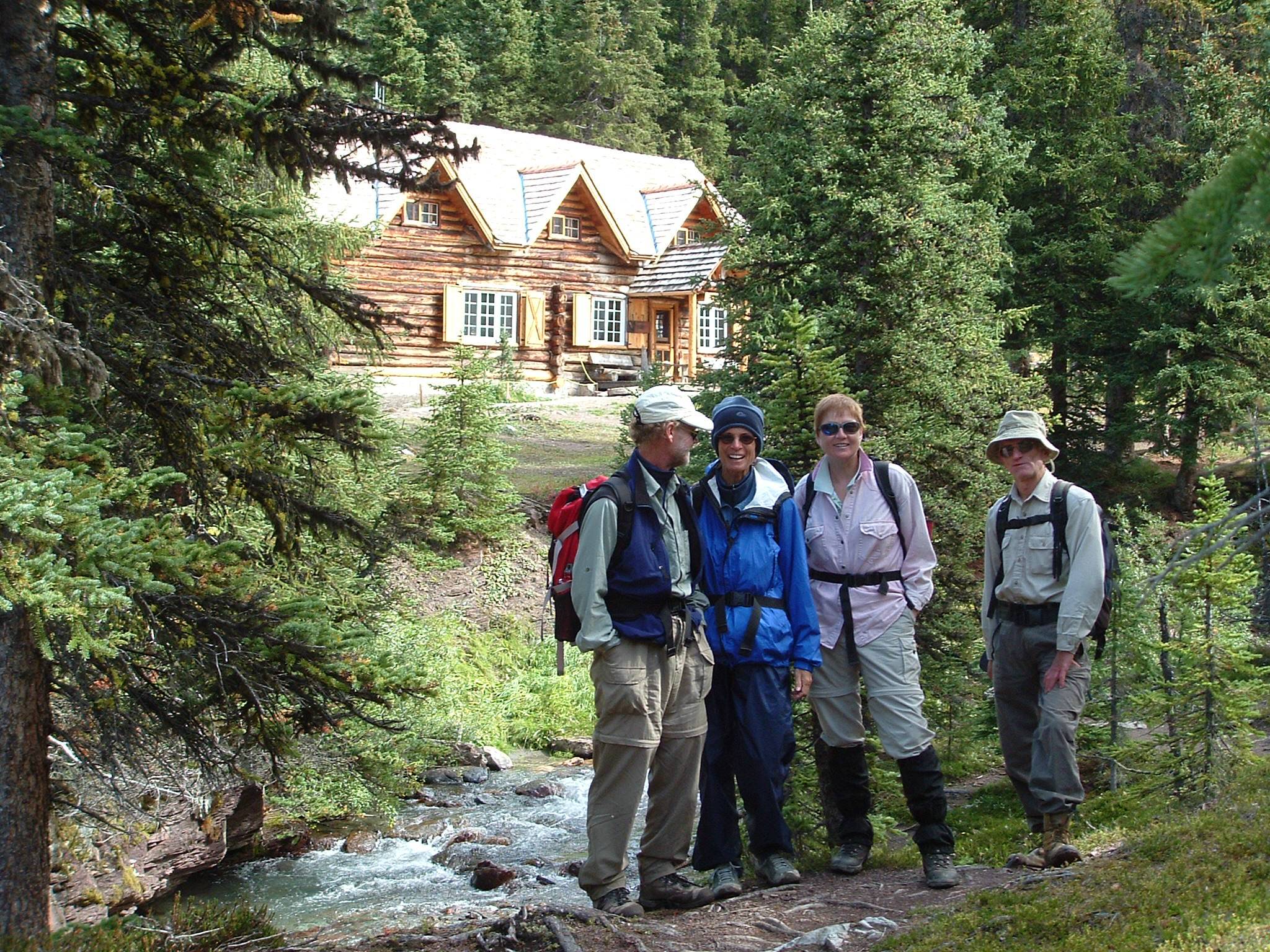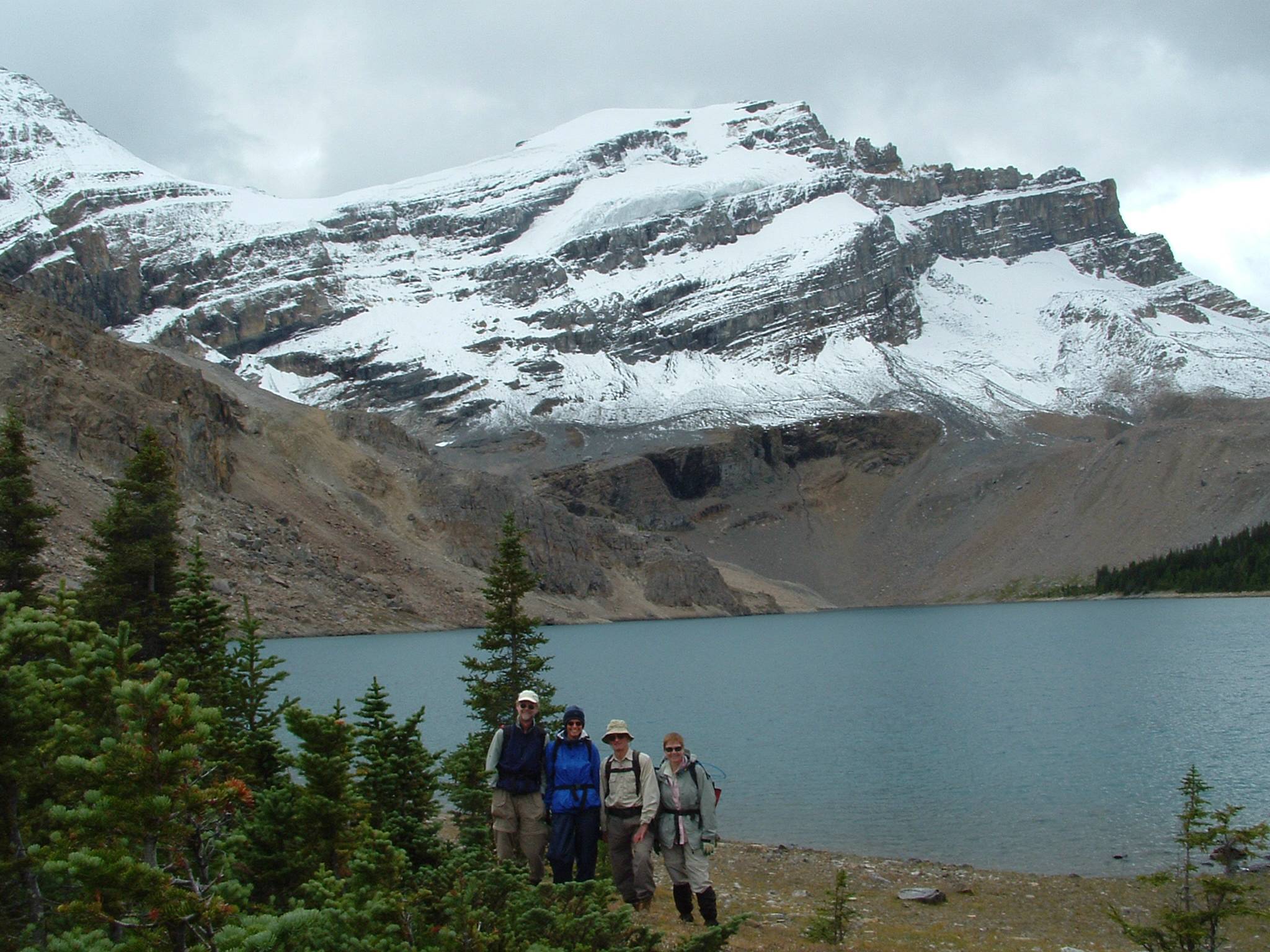 .Lunch was short due to cold and wind,we entered blizzard on the way back/around Skoki Lakes.Saw deer,grouse,ptarmigan,huge marmots and were very fortunate watching three grizllies above Temple Lodge for 20 minutes while Eva and Paul were looking for lost wedding ring on trail. Christine,Eva,John,Paul and Ivan