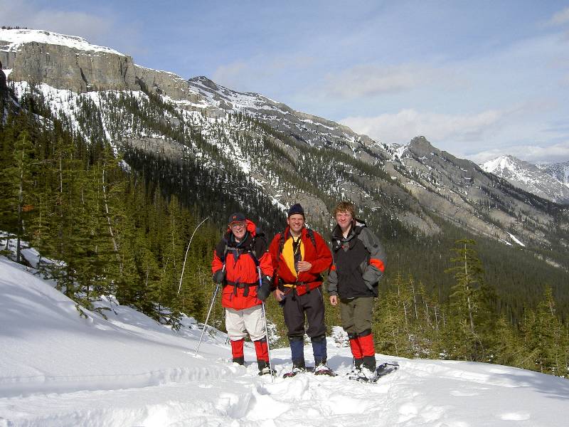 After crossing the debris and the creek (both frozen solid), we put on our snowshoes for the last climb into Bourgeau Lake's basin. In the basin the snow had very little cohesion (facetted) with sun/wind-slab on top.