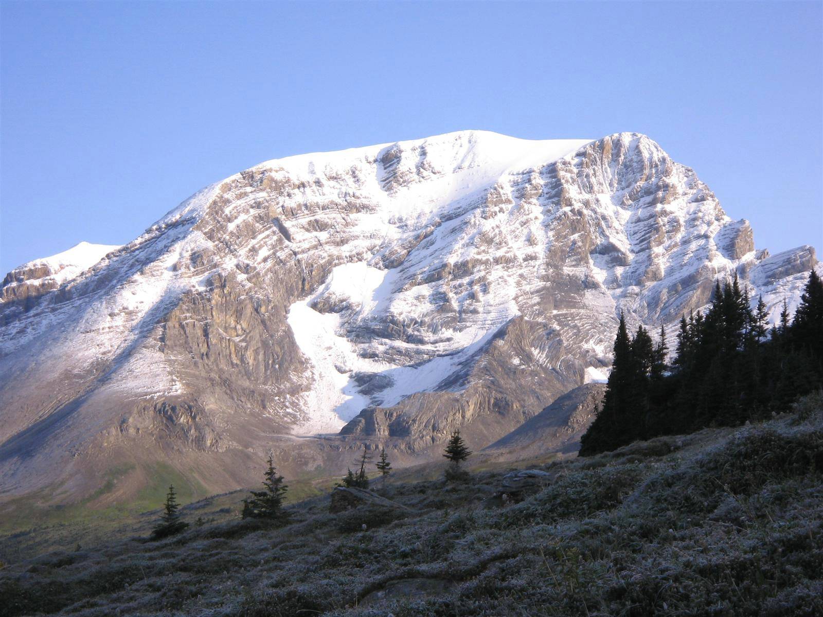 An examination of Mary Vaux Mountain revealed it to be a little more challenging than expected with the aforementioned rockband and snow down to probably 8,000 feet.